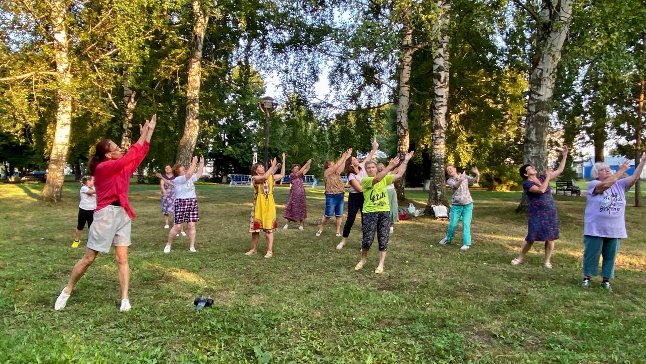 Занятия оздоровительной гимнастикой помогают поддерживать организм в тонусе, тренировать те мышцы, которые в повседневной жизни мы почти не задействуем. И здесь на помощь приходит спиральная гимнастика, элементы гимнастики Цигун. Как отмечают участницы группы – можно позаниматься и дома. Но атмосфера групповых занятий, да ещё на природе, повышают пользу упражнений в разы!